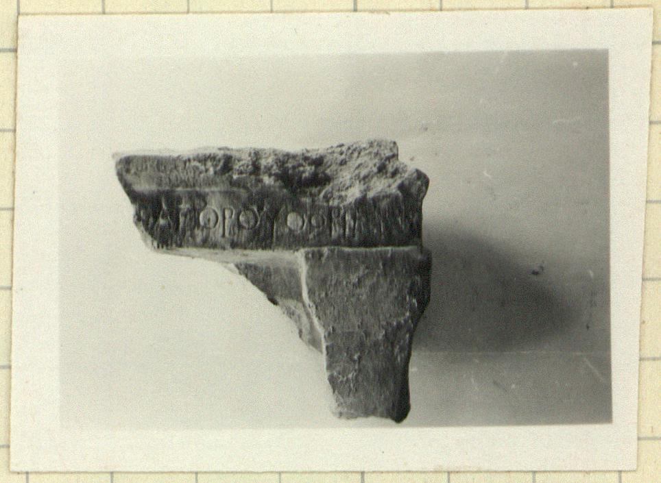 | Description: | Part of sepulchral monument. Broken away above, on the left, and in back. Inscribed on the band above a niche. Pentelic marble. | |