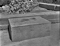 | Description: | Inscribed statue base. About the three exposed sides a band was left undressed around the bottom, and this projects ca. 0.025m. beyond the finished face above. This upper face would seem originally to have been smooth-dressed all over, and then to have been stippled by a fine point driven with short vertical strokes. Along every edge, however, a band (0.025-0.03m.) was left smooth dressed. The back was treated differently. It was first picked fairly smooth, and then a band of drafting was run striking its edges. The top is smooth; in its surface are dowel cuttings for a statue which stop of facing west, its right foot slightly advanced. For each foot there were two dowels, one from the heel, one from the ball. The lower ends of the bronze dowels for the balls of the feet remain in place, imbedded in lead. Of the other dowels only the lead packing remains. The statue would seem to have been carefully removed; the rear dowels chipped free, the front ones broken off. Dedicatory inscription of Leagros, the son of Glaukon to the Twelve Gods. Along the smooth band across the top of the front face runs the inscription, in archaic letters. The tops of the letters in the upper line have been worn away by traffic over the top of the base after the disappearance of the statue. The writting starts at the extreme left edge of the stone, but the upper line occupies only 0.48m. of the total breadth of 0.783m. Pentelic marble. | |