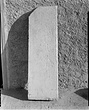 | Description: | Inscribed grave stele. A great stele, broken off at the top. Back and sides finished smooth. Two fine drafted lines run vertically down each side of the front face, near the edge, to 0.082m. from the bottom, where the stele was set into its cutting or socket. As seen from the measurements, it tapers toward the top both as to width and thickness. Stele of Theron. Inscribed retrograde, 0.42m. up from the bottom; probably painted. Pentelic (?) marble. | |