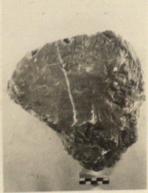| Description: | Inscribed fragment. Broken on all sides. Part of two lines of the inscription preserved, near the top of the fragment. Poor grayish marble. | |