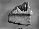 | Description: | Fragment of sculptural inscribed stele. The upper part of a stele, broken above, below, and to the left. Back rough. At top, a carved relief, a draped figure standing facing an altar in center. Four lines of the inscription preserved, and one letter in a fifth. Pentelic marble. | |