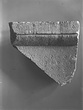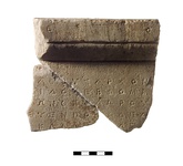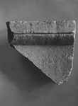 Description:   Fragment from upper part of inscribed stele with moulded band at top.