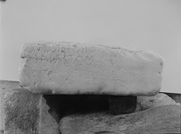 | Description: | Inscribed fragment; base. Broken at top and right side. Bottom rough picked, back slightly smoother. The left side appears to be original. On the top near the left front appears the front corner of a rough picked cutting. Two lines of the inscription preserved. Pentelic marble. Cf. Hesperia 25 (1956), p. 44, no. 68. | |
