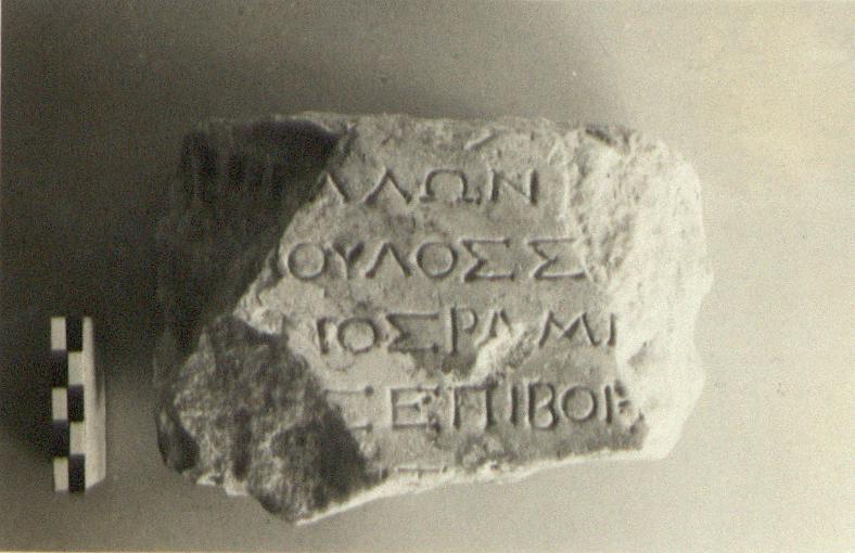 | Description: | Inscribed fragment. Inscribed face and perhaps original back preserved; broken elsewhere. Five lines of the inscription preserved. Hymettian marble. | |