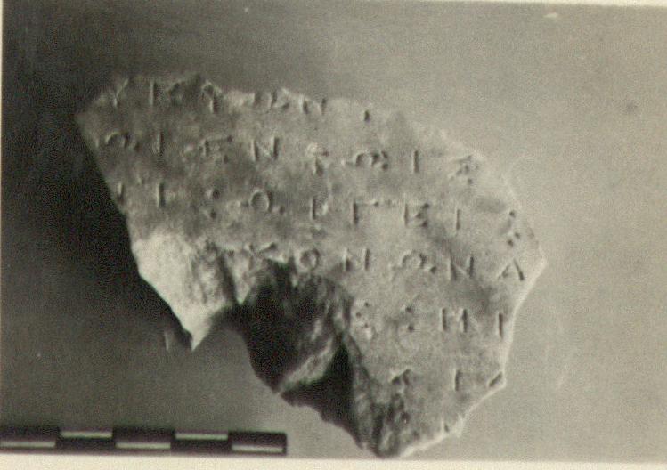 | Context: | Found in foundation packing of early monument, at southeast corner of Bouleuterion Plateia. | |