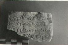 | Description: | Inscribed fragment. Inscribed face, top, and right side preserved; otherwise broken. Parts of five lines of the inscription preserved; stoichedon. Pale Hymettian marble. | |