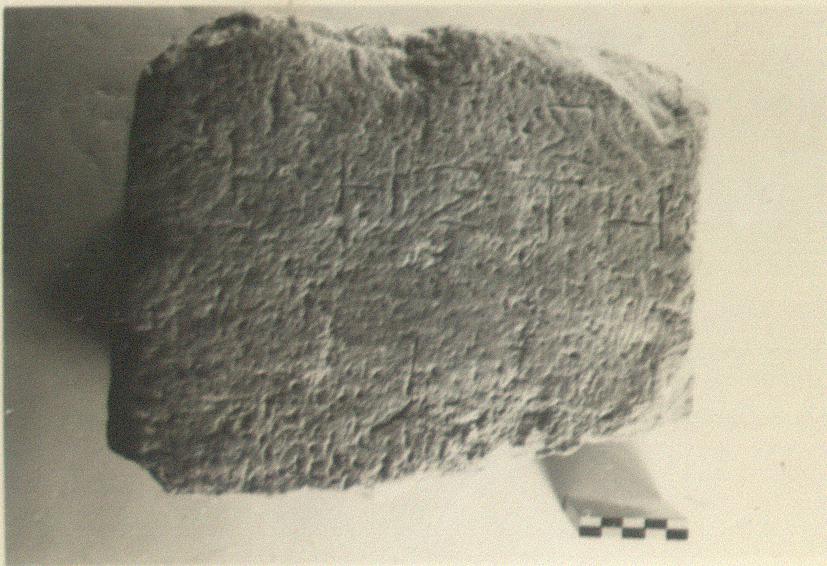 | Context: | Found in the wall of the modern house 638/21, over the east end of the South Stoa II. | |