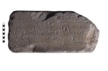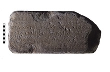 | Dimensions: | H. 0.23; Lett. H. (lines 1 to 5) ca. 0.02, (ine 6) ca. 0.012; P.W. 0.19; P.Th. 0.23; D. (of hole) 0.06 | |
