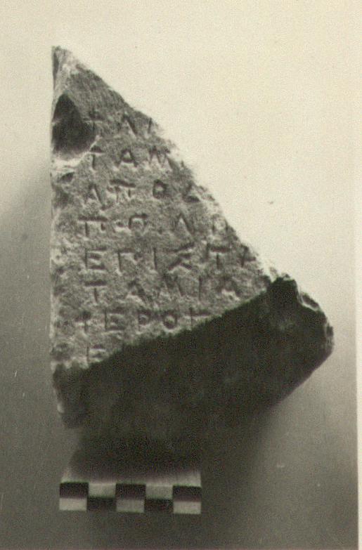 | Description: | Inscribed fragment. Left side preserved. Thirty-four letters remain. Pentelic marble. Cf. I 3320. | |