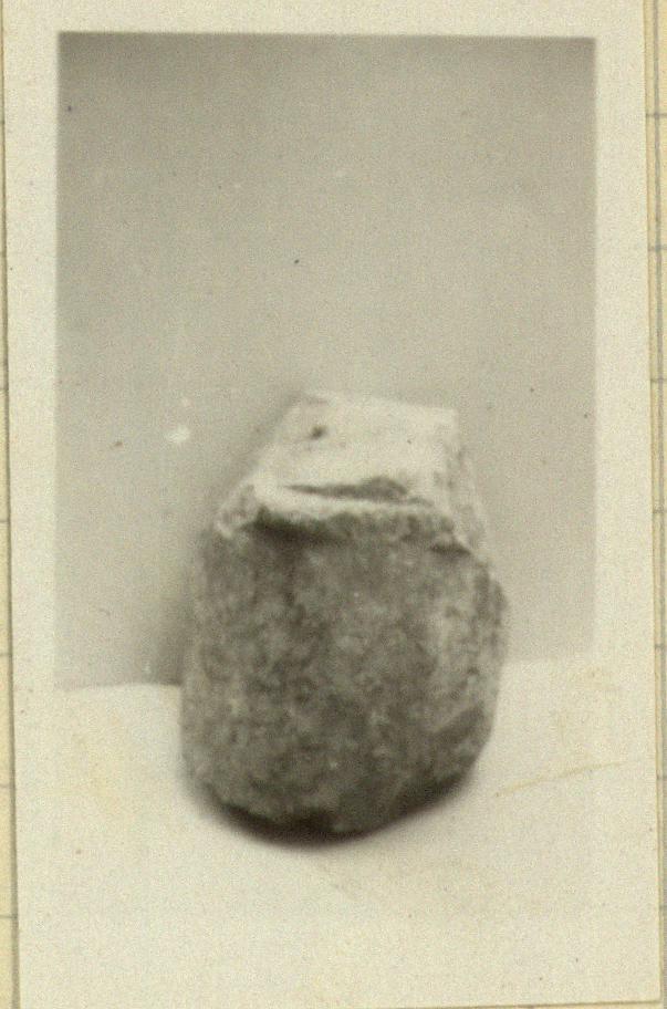 | Description: | Upper part of inscribed columnar grave monument. The top and the ring round it are broken, but part of the upper surface remains. Inscribed in three lines. Bluish-gray marble. | |
