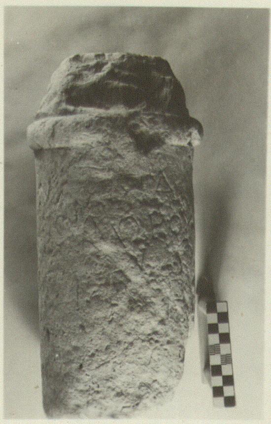 | Description: | Inscribed columnar grave monument. Top surface preserved and entire circumference. Inscribed face badly worn. Three lines of the inscription preserved. Hymettian marble. Cf. IG III, no. 2989. | |
