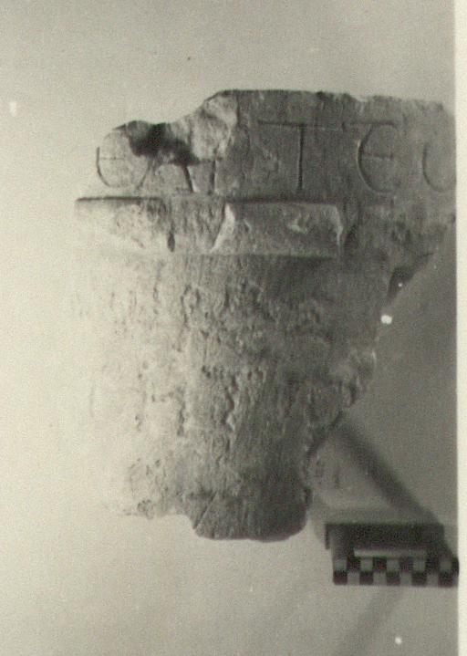 | Context: | Both fragments, found in late wall, in front of the north end of the Stoa of Attalos. | |