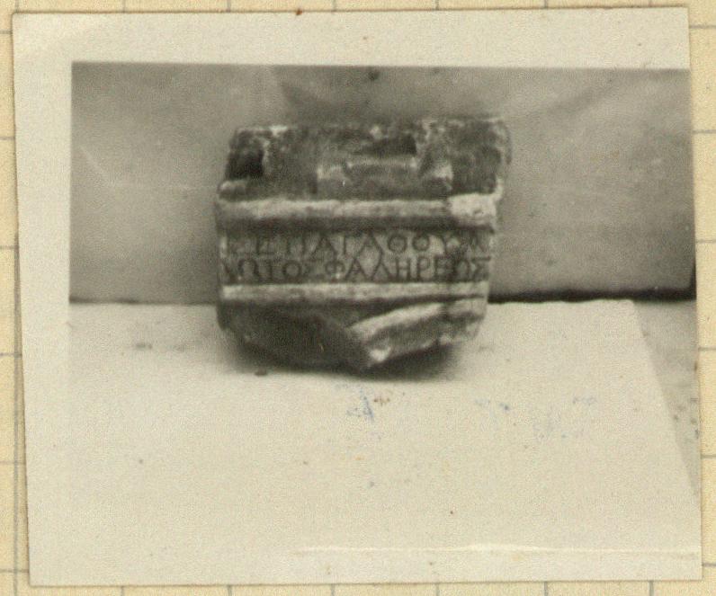 | Context: | Found in the modern wall of the house 646/5, over the area of the Library of Pantainos. | |