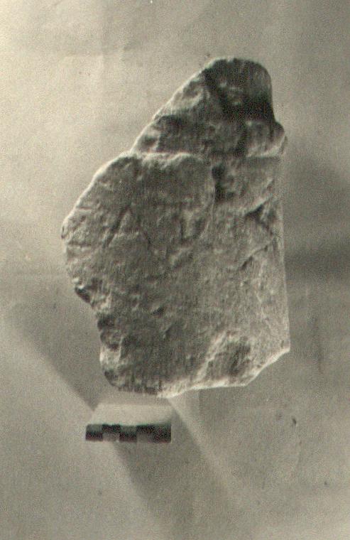 | Description: | Inscribed fragment of columnar grave monument. Bit of top preserved. Five letters remain. Hymettian marble. | |
