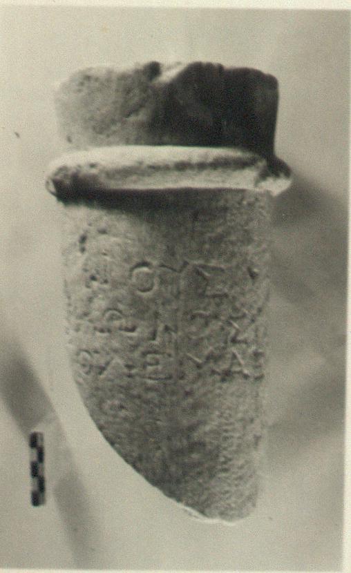 Description:   Inscribed fragment of columnar grave monument.