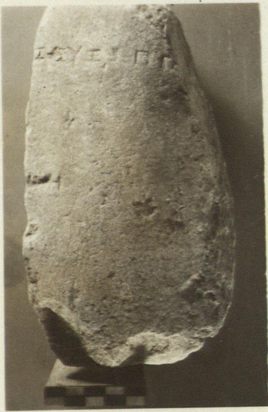 | Description: | Inscribed fragment of grave monument. Piece from shoulder of marble lekythos. Inscribed face and bit of top surface of shoulder only preserved. Two lines of the inscription preserved. Pentelic marble. | |