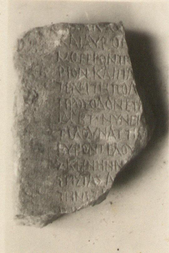| Description: | Inscribed fragment. Left edge and part of rough picked back surface preserved. Other edges broken. The left end of thirteen lines preserved. Hymettian marble. ADDENDA Joins with I 3240. | |