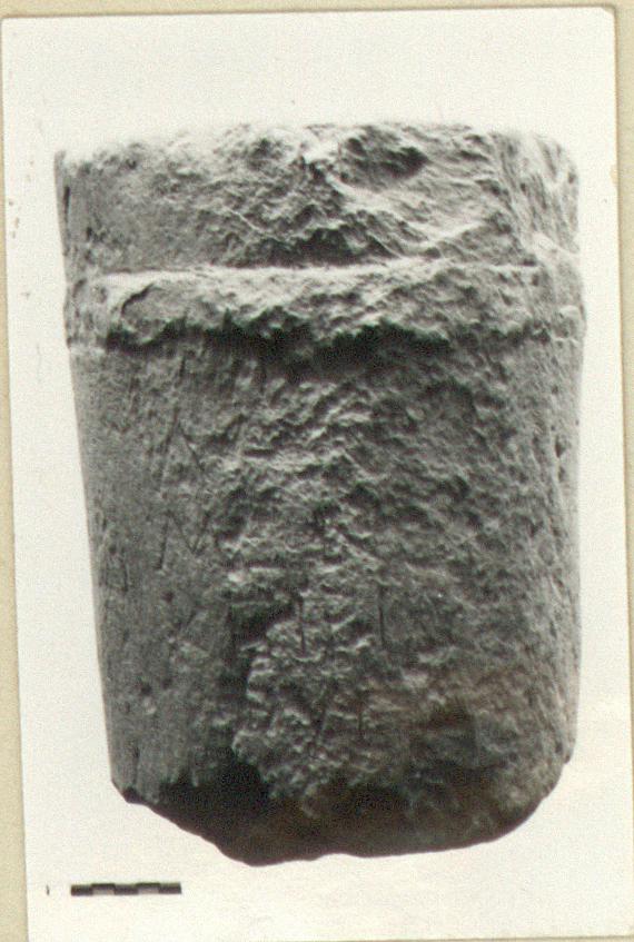 | Dimensions: | H. 0.35; Lett. H. (lines 1-3) ca. 0.03, (line 4) ca. 0.025; Diam. (below moulding) 0.23 | |