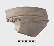 | Description: | Inscribed fragment. A scrap from the side wall of a shallow basin with slightly offset collar around the top outside. The floor is lightly stippled and considerably worn. Inscribed on the upper face of the lip. A fine grained white marble with dark streaks. ADDENDA A fragment of another similar basin, uninscribed is ST 80 (B 729); on shelf with well group B:15/ΛΔ. | |