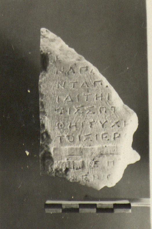 | Context: | Found clearing the face of the precinct wall of Roman times, southeast of the Tholos. | |