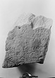 | Description: | Fragment of inscribed stele. Broken all round. Parts of six lines of the inscription preserved, arranged in columns. Upper part of two wreaths preserved below lines. Pentelic marble. Cf. I 138. Belongs with I 756 and I 5046. | |