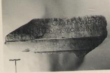| Description: | Inscribed fragment. Inscribed face and top preserved. Inscription on fascia above a moulding. Two lines of the inscription preserved. Hymettian marble. Addenda 2025: I 2977 joins with I 5373 (SP, GB) | |