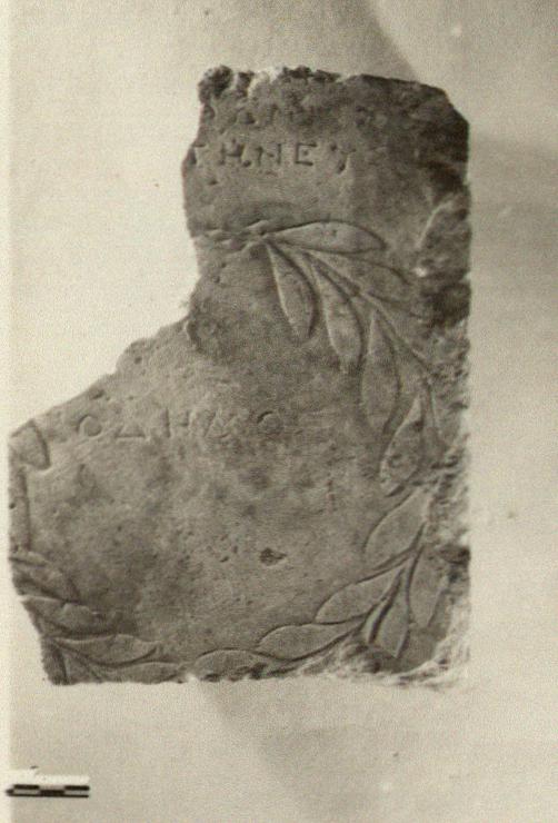 Context:   Found in a late wall, northeast of the Odeion.