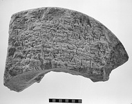 | Description: | Inscribed fragment. The lower part and right side broken away; the top curved; in the back a large circular cutting. Chisel marks not removed from inscribed face. Four lines of the inscription preserved. Hymettian marble. | |