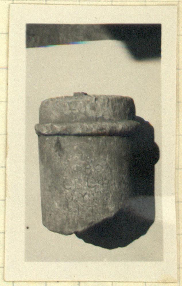 Dimensions:   H. 0.39; Lett. H. 0.025; Diam. (at top) 0.28; L. (of cutting) 0.08; D. (of cutting) 0.03