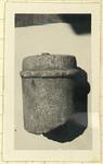 In the top is a rectangular cutting, into which a fragment of dark blue-gray stone is now wedged with cement.