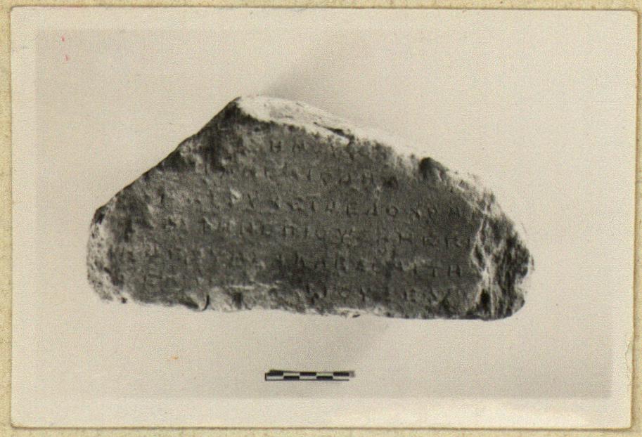 | Description: | Inscribed fragment. Back preserved, rough picked, worn. Six lines of the inscription preserved. Hymettian marble. | |