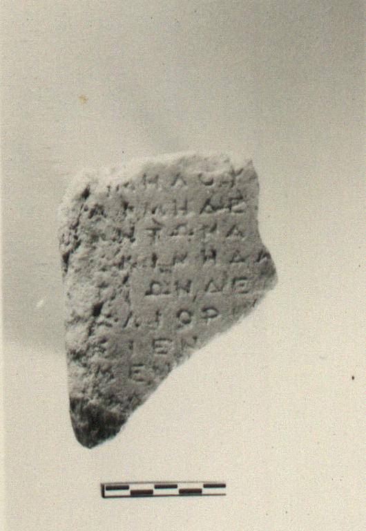 | Description: | Inscribed fragment. Inscribed face and left face preserved. Left edge of inscribed face badly worn. Nine lines of the inscription preserved; stoichedon. Space between lines, five including: 0.038m. Space between lines, five including: 0.038m. Pentelic marble. | |
