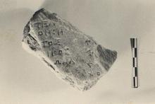 | Description: | Inscribed fragment. Inscribed face only preserved. Attic Manumission. Six lines of the inscription preserved; stoichedon. Space between lines, four including: 0.061m. Space between letters, four including: 0.061m. Hymettian marble. Cf. I 3183. | |
