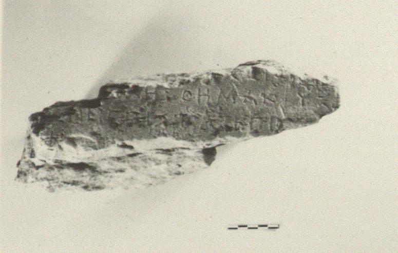 | Description: | Inscribed fragment. Inscribed face and bottom preserved. In top of stone the bottom of a large rectangular cutting; a dowel-cutting partly preserved at left end. Four lines of the inscription preserved. Hymettian marble. | |