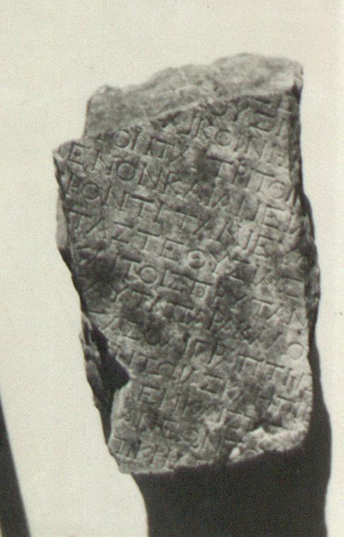 | Context: | (Θ 557), found in a modern bothros, between the Middle Stoa and the Southwest Temple; actually point of wall B. Joining fragment (Θ 557) found built into foundations of euthynteria of Civic Offices Stoa (little Stoa) adjacent to Odeion, roughly 14.60m. west of west wall of Odeion. | |
