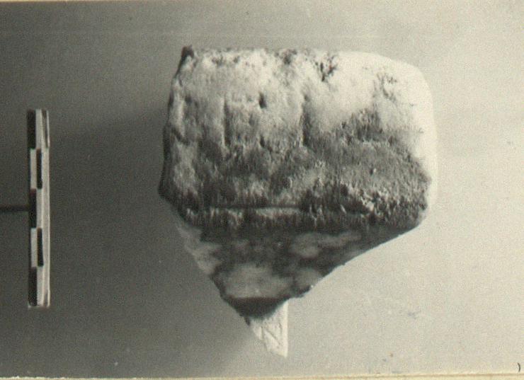 | Description: | Inscribed fragment. Fragment from upper right corner of a flat-topped stele preserving the moulding at the top and the extreme upper right corner of the stele proper. On the moulding, four letters remain; on the stele, one letter. Pentelic marble. | |