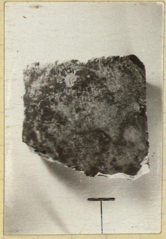 | Description: | Inscribed fragment. Broken at bottom and back. Front and sides smooth-finished. Top smooth-finished only along front; picked behind. Four lines of the inscription preserved; complete. Hymettian marble. | |