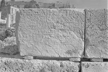 A single letter, preserved in upper right corner of block. Although it is a trifle larger and somewhat more carefully cut than the other letters of the monument, there seems little doubt that it is the first letter of the first line, the slight differences to be explained by the fact that it is the first letter.