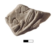 | Description: | Inscribed fragment. Back preserved. Broken all around. Part of a wreath with letters inside. Pentelic marble. | |