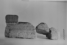 | Description: | Inscribed fragment. Broken all around. Part of crowning member, with inscription above, and also on moulding below. Hymettian marble. ADDENDA Joins with I 2615b; also a tenuous join to the right side of I 2615a. Belongs with I 614, I 616, I 2531, I 3236, I 4036. | |