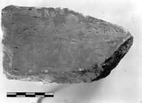 | Description: | All sides broken except for the left, which is finely picked. The left edge of the face of the inscription is damaged. The left side has a smooth band at the edge (anathyrosis ?). Parts of seven lines of the inscription preserved. Hymettian marble. Cf. AJA 56 (1952), pl. 31 b. | |