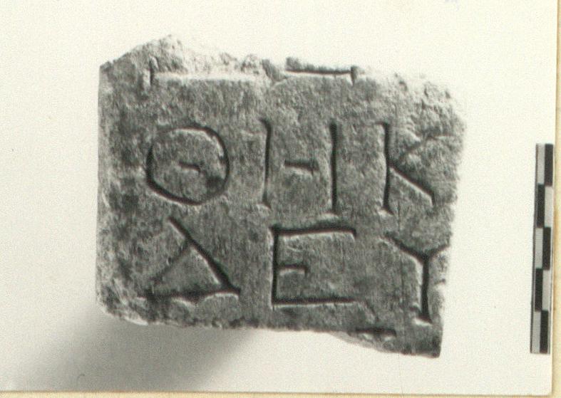| Description: | Inscribed fragment. Left side perhaps original; otherwise broken all around. Part of two lines of the inscription preserved, with traces of the lines above and below. Pentelic marble. | |