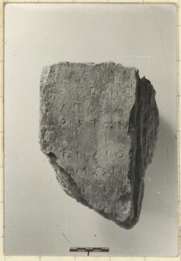 | Description: | Inscribed fragment. Part of left edge preserved; otherwise broken. Pentelic marble. | |