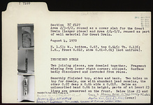 | Dimensions: | H. 1.53, (of hole) 0.018, (of band) 0.06; Lett. H. (front) 0.012, (side) 0.01-0.013; W. (bottom) 0.67, (top) 0.645, (of hole) 0.06; Th. 0.135; D. (of hole) 0.07 | |