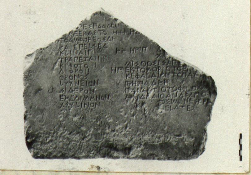 | Description: | Inscribed fragment of stele. Broken above, right and back. Lower left hand corner of a large stele. Surface and lettering generally very fresh. Band at bottom is roughened. Attic Stele II. Pentelic marble. ADDENDA Joins to I 236. | |