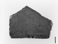 | Description: | Inscribed fragment of stele. Broken above, right and back. Lower left hand corner of a large stele. Surface and lettering generally very fresh. Band at bottom is roughened. Attic Stele II. Pentelic marble. ADDENDA Joins to I 236. | |