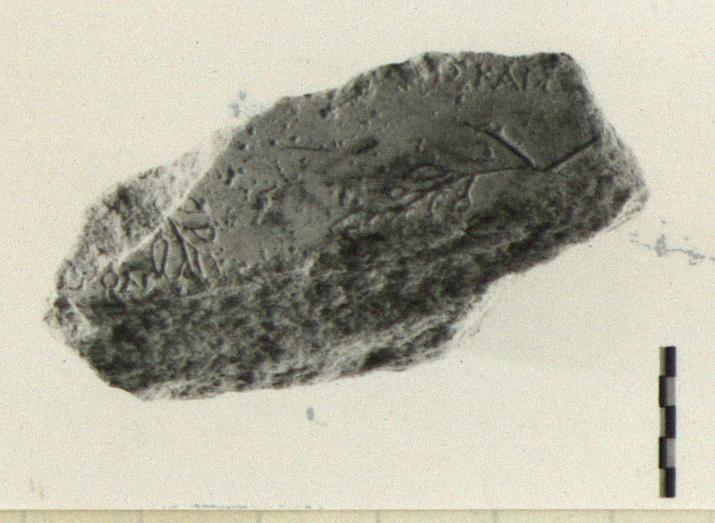 | Description: | Inscribed fragment. Broken all around. Parts of two wreaths preserved. "ION" within wreath on left, "IΣΚΑΙ" above wreath on right. Sugary white marble. | |