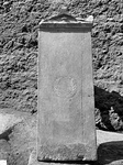 | Dimensions: | H. 1.72; Lett. H. ca. 0.008-0.01; W. (at bottom) 0.665, (at top under pediment) 0.602; Th. (at bottom) 0.19, (at top) 0.16 | |