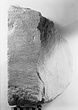 The back rough picked, much worn; the left side rough picked, with a toothed chiselled band, along the front edge. At the bottom, the start of a tongue for setting is preserved; above this the lower part of the stele is left rough for ca. 0.06m. Top and right broken.