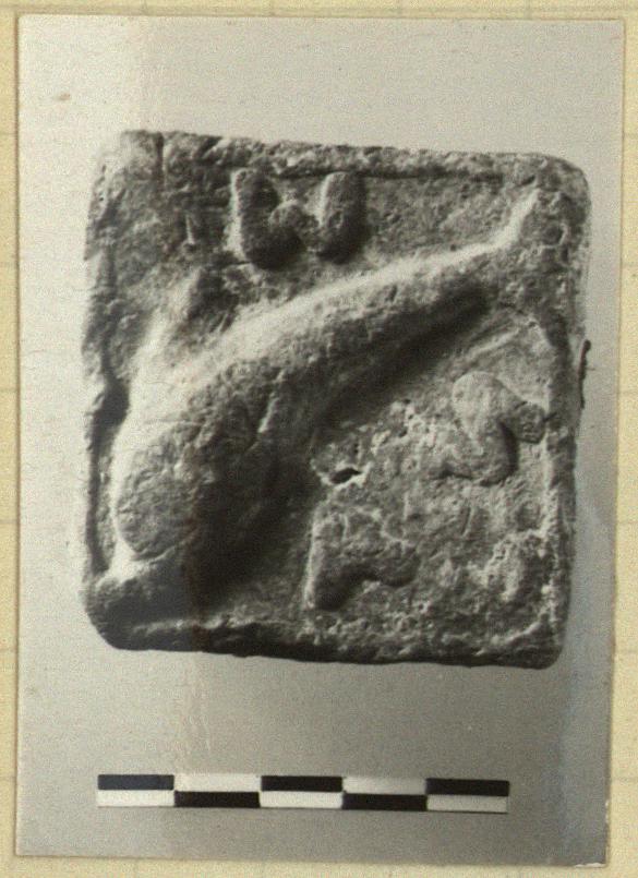 | Description: | A rectangular one with dolphin. Raised letters: M N A. | |